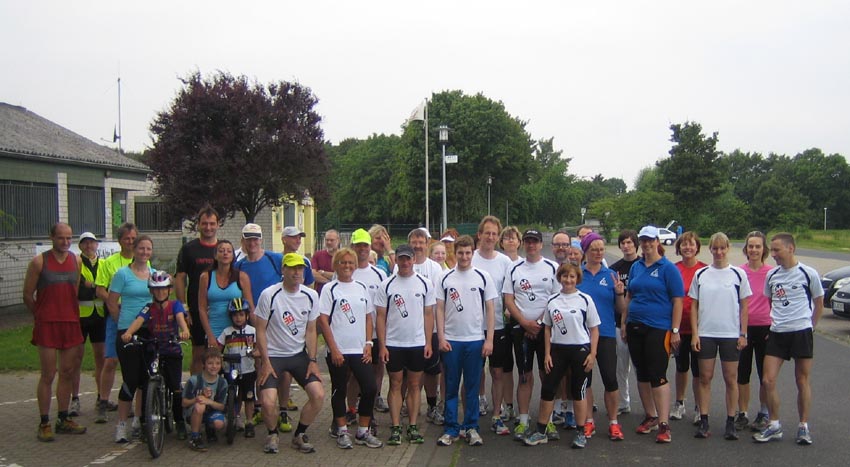 Nach den einleitenden Worten von Bernd Schlösser und Timo Pfannenschmidt setzte sich die 40köpfige Laufgruppe plus Fahrradbegleitung in Bewegung. Auf einer Gesamtstrecke von über 33 Km führte die Route durch alle Ortsteile der Gemeinde. An den Wechselpunkten in Klein-Vernich, Hausweiler, Derkum, Müggenhausen, Metternich und zwei in Weilerswist wurden die Läufer u.a. von den befreundeten Vereinen der Gemeinde, dem TUS Vernich, SSV Eintracht Lommersum, SSV Weilerswist, DHO Sportsfreunde, SV Metternich und der TAFEL betreut.
