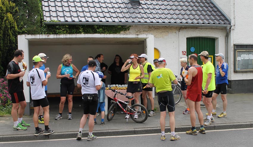 Sehr viele Häuser einschließlich Gärten sind fertig und ergeben eine sehr schöne Wohnlandschaft. Der Freundeskreis Weilerswist Süd hatte sich bereit erklärt auch hier einen Wechselposten einzurichten. Die LäuferInnen und WalkerInnen fühlten sich dort auch sehr gut aufgenommen.
